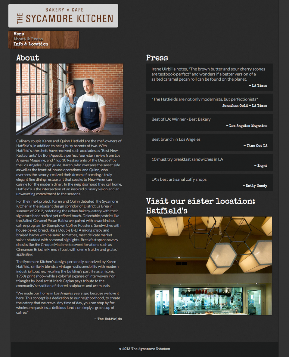 Culinary couple Karen and Quinn Hatfield are the chef-owners of Hatfield’s, in addition to being busy parents of two. With Hatfield’s, the chefs have received such accolades as “Best New Restaurants” by Bon Appetit, a perfect four-star review from Los Angeles Magazine, and “Top 10 Restaurants of the Decade” by the Los Angeles Zagat guide.